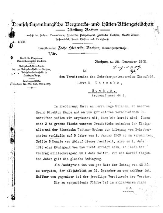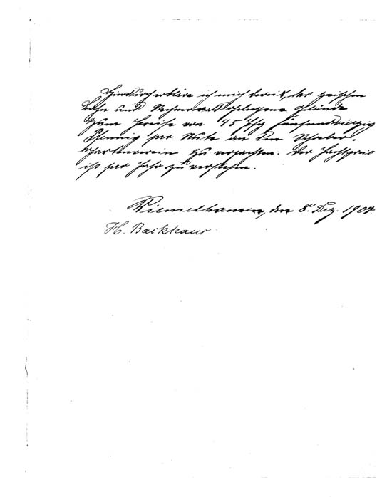 08.12.1908: Der Pächter erklärt sein Einverständnis der Flächennutzung durch den KGV.