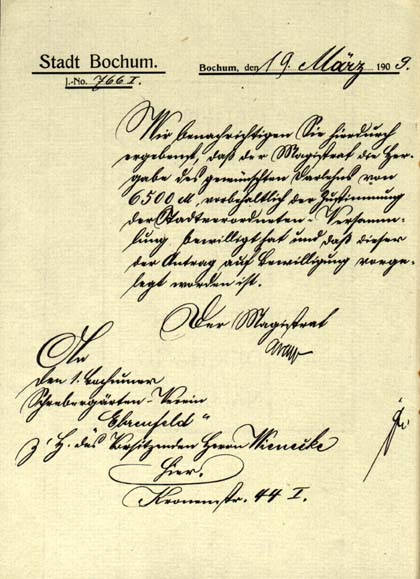 Stadt Bochum Bochum, den 19.März 1909