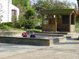 Im Schatten drei riesiger Platanen liegt unser Kinderspielplatz. Hier wurden in jüngster Zeit mit tatkräftiger und finanzieller Unterstützung der Mitglieder Spielgeräte angeschafft und errichtet.